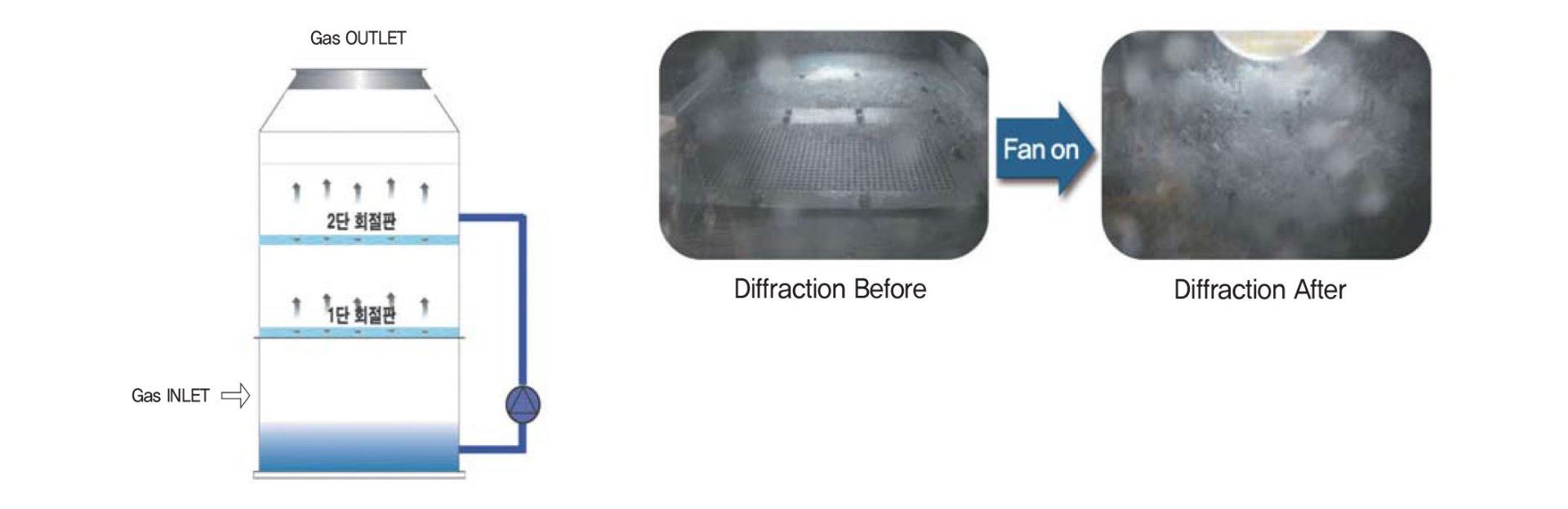 Æ÷ÇÔÇÑ ÀÔÀÚ´Â ÀÚ¿¬ ³«ÇϵǸç, Åë°úµÈ ±âü³ª ¾×ü¼ººÐÀ» ÇÔÀ¯ÇÑ ±âü´Â ºÒ¼ø¹°ÀÌ ¿ÏÀü Á¦°ÅµÈ ûÁ¤°¡½º(Clean Gas)°¡ µÇ¾î Demister¸¦ Åë°ú ¹è±âµÈ´Ù.