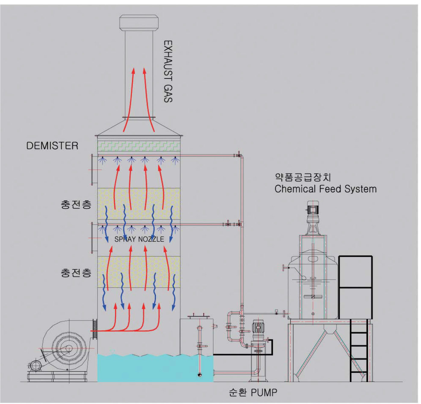 -Wet Scrubber´Â Èí¼öžÀÇ ÀûÁ¤ÇÑ È¿À²À» À§ÇØ ÀÏÁ¤ÇÑ ¾çÀÇ Èí¼ö¾×(Absobent Liquid)ÀÌ ÀûÀýÈ÷ °ø±ÞµÇ¾î¾ß ÇϹǷΠÈí¼ö¾×À» ¼øÈ¯½Ã۱â À§ÇØ ¼øÈ¯ ÆßÇÁ´Â ¸Å¿ì Áß¿äÇÏ´Ù.