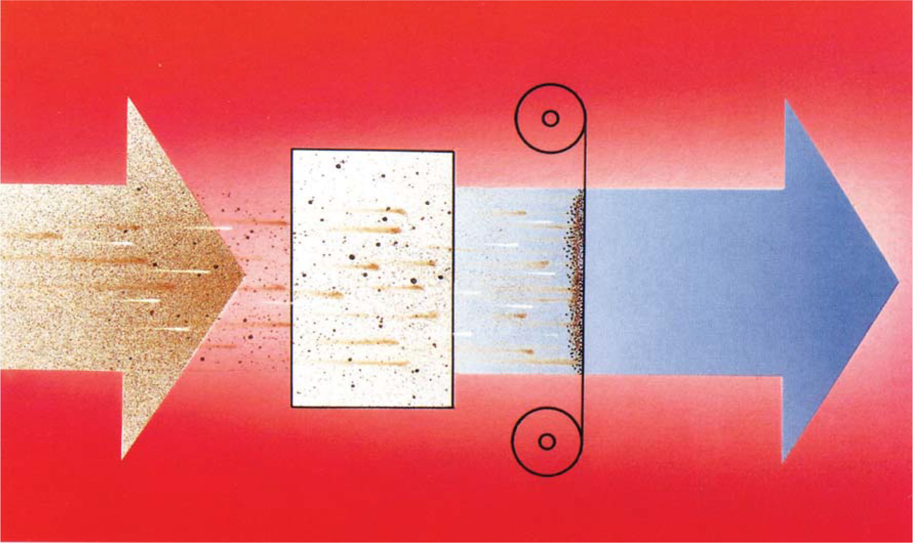Àü±âÁýÁø CellÀÇ ¹æÀü¼±À¸·ÎºÎÅÍ(+)11KV~12KV DC Àü¾ÐÀ» °É¾î À¯ÀԵǴ ¹Ì¼¼¸ÕÁö, ´ã¹è¿¬±â, ¹ÚÅ׸®¾Æ µîÀÌ (+)ÀüÇϸ¦ ¶ì¸é¼ ¼ÛdzÀÇ È帧À» Ÿ°í ÁýÁøºÎÀÇ 5KV~6KV(+)¿Í (-)Plate »çÀÌ·Î À¯ÀÔµÇ¸é¼ (-)Plate¿¡ ºÎÂøµÇ¸ç, ºÐÁøÃþÀÌ Áõ°¡µÇ¸é¼ Plate·Î ºÎÅÍ ¹Ú¸®µÈ ºÐÁøÀº »óÈ£°£ÀÇ °ÇÑ ÀÀÁý·ÂÀ¸·Î ÀÔÀÚÀÇ Å©±â°¡ Áõ°¡µÈ »óÅÂÀ̹ǷΠÈÄó¸® FilterÀÎ Roll Media¿¡ ½±°Ô Æ÷ÁýµÈ´Ù. ÀÏÁ¤·®ÀÌ Æ÷ÁýµÇ¸é °ø±âÅë°ú ¾Ð·Â¼Õ½ÇÀÌ Áõ°¡ µÇ¹Ç·Î ÀÏÁ¤¾Ð·Â¼Õ½Ç¿¡ µµ´ÞÇϰųª ŸÀ̸ӿ¡ ÀÇÇØ ÀÏÁ¤½Ã°£¿¡ µµ´ÞÇÏ¸é »õ·Î¿î Media·Î ±ÇÃëµÇ¾î ÀÏÁ¤Ç³·®À» ¿¬¼ÓÇØ¼ º¸³»ÁÖ´Â ¿ø¸®ÀÇ Filtration SystemÀÌ´Ù.